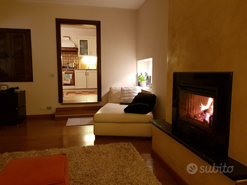 Così composto:Piano terra Cortiletto privato, Ingresso,Cucina con camino e pavimento pregiat Sala anch'essa con camino,zona Soggiorno con prezioso tavolo rotondo e antica stufa in ghisa e maiolica,favolosa e lunga terrazza con vista,munita di lussuosi serramenti in alluminio satinato e doppi vetri,scorrevole e oscurabili in domotica con tende a scomparsa plisset in tessuto interne al vetro.Piccolo e grazioso Bagno con pavimento realizzato in resina,antica scala in pietra con faretti led segna passo.