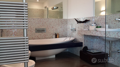 Piano primo.Camera padronale matrimoniale finemente arredata,seconda camera,lussuoso e ampio bagno con vistosa vasca da Bagno e spaziosa doccia entrambi con flussi d'acqua a cascata,rivestimento con tessere a mosaico di Bisazza e pavimento scenografico in resina.Spettacolare veranda gemella di quella a piano terra.Inoltre sempre al piano primo,armadio a muro e un utile ripostiglio.Seminterrato:adibito a Taverna,con ampio spazio che si puo' arredare a piacimento, una bella e funzionale cucina è già presente.Bagno con doccia e Lavanderia adiacente.