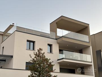 A pochi passi dal centro di San Vito al Tagliamento, inserito in una lussuosa palazzina di nuova costruzione, proponiamo in vendita questo splendido attico bicamere e biservizi. L'unità abitativa presenta ottime finiture grazie ai materiali di primissima qualità utilizzati in fase di realizzazione. Particolare attenzione è stata dedicata all'isolamento acustico e termico tra le singole abitazioni. L'impianto di riscaldamento e raffrescamento ad aria, con integrato il ricambio meccanizzato dell'aria, consente di vivere in un ambiente sempre salubre e confortevole. L'impianto termico ed elettrico è gestito da sistemi di domotica che permettono il controllo dell'abitazione anche da remoto. Elevata efficienza energetica, l'edificio è in classe energetica nZEB (superiore alla classe A4). L'attico è servito da un impianto fotovoltaico da 2,5 kW e da un impianto geotermico. L'immobile oltre al terrazzo di generose dimensioni viene venduto con posto auto coperto, due posti auto scoperti e cantina di proprietà.
