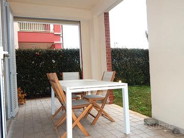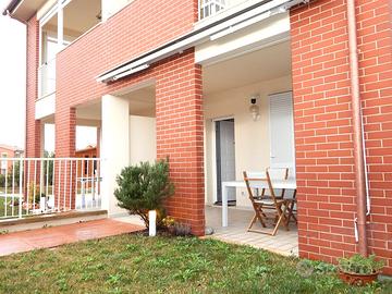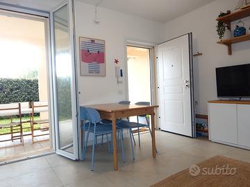 Appartamento trilocale nuovo realizzato nel 2021 Marina di Castagneto Carducci, a poca distanza dalla spiaggia del Seggio. L'immobiliare è parte di un fabbricato di solo quattro unità abitative, si sviluppa al piano terra angolare e dispone di un ampio porticato, con ingresso indipendente da giardino privato.
