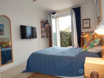 Dal soggiorno, tramite un disimpegno si accede alla camera matrimoniale da cui si accede a un piacevole giardino tergale, seconda camera, bagno con doccia finestrato.