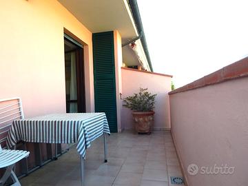 Marina di Castagneto Carducci - Zona Viale delle Palme - In zona residenziale, silenziosa e comoda al mare raggiungibile a piedi disponiamo di appartamento angolare posto al piano primo con ingresso indipendente da giardino privato al piano terra.