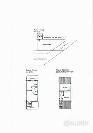 Salendo con ampia e comoda scala interna, arriviamo al primo piano dove troviamo il soggiorno con angolo cottura con accesso ad un' ampia terrazza pranzabile coperta, disimpegno, camera matrimoniale con terrazza, vano finestrato adibito a cameretta, bagno con doccia finestrato.