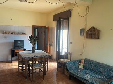 L'interno dell'appartamento si compone da un ingresso che conduce ad un grazioso soggiorno, dotato di un romantico camino che crea un'atmosfera accogliente. Accanto troviamo una cucina ampia ed abitabile, ideale per accogliere amici e familiari. La zona notte include una camera da letto matrimoniale, una cameretta ed un bagno con vasca e doccia, perfetto per momenti di relax.