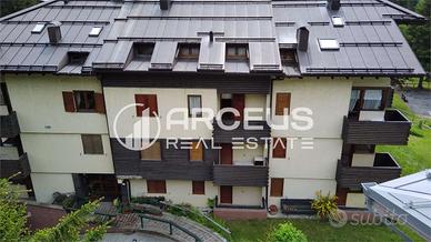 Madonna di Campiglio, a 500 metri dal centro, in condominio di 21 unità, vendiamo appartamento quadrilocale mq 99 posto al piano secondo su tre servito con ascensore, esposizione Nord /Ovest, composto da: ingresso, cucina, ampio soggiorno, sala da pranzo, tre stanze da letto, di cui la matrimoniale con bagno padronale, ulteriore bagno e due balconi.