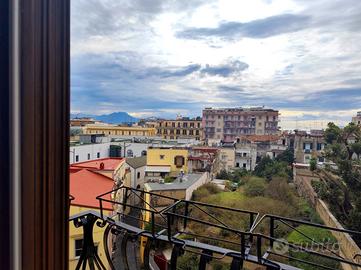 Il palazzo è del 1920. Elegante. Importante. Restaurato in facciata e ben conservato. L'immobile si apre sul Vesuvio e sul mare grazie alla sua posizione e piano alto. Il quarto piano permette di ricevere aria e sole grazie anche alle finestre e porte finestre su due lati opposti e paralleli. La pianta è rimasta in buona misura quella originaria. L'ingresso porta ai vari ambienti ben divisi. Il salone doppio si apre sulla veduta ampia e gode di un balconcino. Volendo lo si può ripristinare, creando una ulteriore stanza con ingresso dal corridoio. Ci sono altre due stanze di cui una molto ampia che permette la creazione del bagno en suite. (Gli scarichi sono vicini in prossimità del bagno). Cucina vivibile. Bagno ampio. Inoltre c'è uno spazio utilizzabile a lavanderia. Infine la proprietà dispone di cantina ampia, tripla, di 27 mq, restaurata, con finestra e porta di ferro nuova. Il posto auto è a parte al costo di euro 30.000. A scelta si può comprare solo casa.