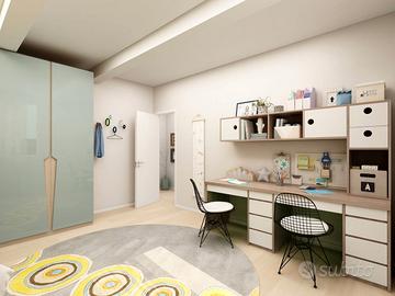 Disposto su due livelli e protetto da porta blindata con fianco luce e vetro antisfondamento, l'ingresso è ampio ed abitabile è gode di una scala di design che conduce all'unico ambiente al piano primo: una camera matrimoniale con bagno en suite e terrazzino d'epoca completamente restaurato, il piano terra continua con cucina abitabile e soggiorno, bagno finestrato e ripostiglio nel sottoscala, due camere matrimoniali con ulteriore bagno finestrato.