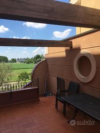 Appartamento funzionalmente indipendente con ingresso privato ad uso esclusivo e impianti acqua, luce e gas autonomi, ubicato in contesto signorile a Medolla. Situato al primo piano senza ascensore, con ampio terrazzo pavimentato in cotto con travi a vista, fontanella a muro e attacco gas per barbecue, giardino esclusivo di mq 23 raggiungibile dalla strada e collegato dal terrazzo con scala in muratura, garage e posto auto di proprietà. L'unità abitativa è composta da ingresso su ampio e luminoso soggiorno con caminetto Piazzetta, cucina abitabile, disimpegno con armadiature a muro, due camere matrimoniali, due bagni con doccia di cui uno in camera, lavanderia. Intera zona notte con parquet, impianto di condizionamento con pompa di calore dual split nuovo, impianto di allarme e cassaforte. Scuri ed infissi in legno. Completamente arredato. Residenziale Cavallo 2, palazzina in angolo.