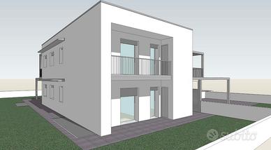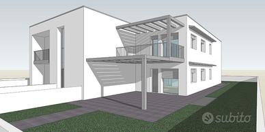 Ingresso indipendente e ampio portico abitabile di fronte alla cucina. Zona living di 30 mq. ! Tre camere, due bagni, garage doppio parallelo di 38 mq. , taverna, cantina. Giardino privato di 258 mq.