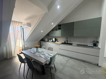 GIUGLIANO-Proponiamo in vendita sito in Giugliano in Campania, in Via Romagnosi, nelle immediate vicinanze della "Metropolitana", in contesto tranquillo e ben curato, all'interno di un parco residenziale signorile, elegante appartamento mansardato completamente ristrutturato, situato al terzo piano servito da ascensore. L'immobile, di circa 90 mq, si distingue per una distribuzione moderna e funzionale degli spazi. L'ingresso si apre su un ampio e luminoso soggiorno con cucina a vista, ambiente accogliente e ideale per la vita quotidiana e per momenti di convivialità. La zona notte è composta da una spaziosa camera da letto, una cameretta e un bagno rifinito con materiali di qualità. La soluzione gode di una doppia esposizione che garantisce ottima luminosità durante tutto l'arco della giornata, valorizzata dalla presenza di piccoli balconi. Completano la proprietà: -Box auto di circa 40 mq; -Posto auto all'interno del parco. L'appartamento si presenta in ottime condizioni, pronto per essere abitato, ed è ideale per famiglie o per chi cerca una soluzione confortevole in una zona ben collegata. La vicinanza alla metropolitana rappresenta un valore aggiunto per chi necessita di spostamenti rapidi. Il prezzo di vendita richiesto è di € 180.000,00 leggermente trattabile. Per Maggiori Informazioni Mario (Anche Whatsapp) Rif. MAV446