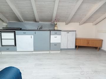 Affittasi camera accogliente completamente arredata con cucina privata e (Bagno condiviso) in contesto finemente ristrutturato (classe A) e dotato di riscaldamento, finestre triplo vetro e cappotto esterno.