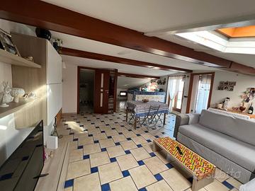 La mansarda è composta da un luminoso salone con accesso diretto ad un ampio terrazzo di circa 20 mq, ideale per momenti di relax, cucina in muratura, funzionale e curata nei dettagli, s