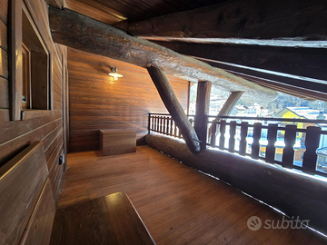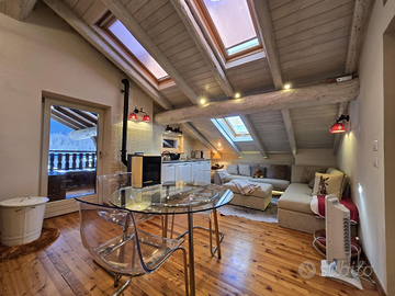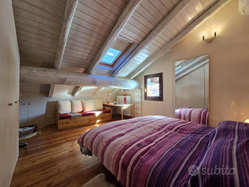 Nel borgo di Éresaz, sopra Saint-Vincent, soluzione composta da due appartamenti venduti esclusivamente insieme. In un contesto silenzioso e autentico, mansarda di charme di circa 60 mq, composta da living, due camere, un bagno e balcone panoramico, un box e cantina. Secondo appartamento adiacente al piano sottostante composto da composta da living con camino, una camere, un bagno e balcone panoramico. Riscaldamento a pellet nella mansarda e a gas nell'appartamento sottostante. A soli 30 minuti dalle piste da sci di Brusson e Champoluc, è il luogo ideale per chi desidera un acquistare ad un ottimo prezzo un rifugio alpino autentico e riservato, da dove partono i principali sentieri di trecking, restando a soli 10 minuti da San Vincent, dove approfittare di Terme, Casino ed dei migliori ristoranti.