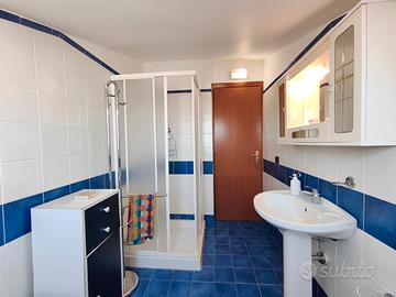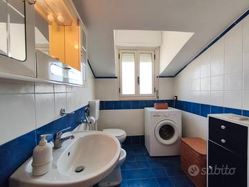 Al secondo piano di questo stabile quasi fronte mare c'è la nostra splendida mansarda con 30 metri quadri di veranda, un ampio soggiorno con comodi divani, tavolo da pranzo e TV full HD e aria condizionata. Cucina completa comunicante con il soggiorno. 2 camere da letto matrimoniali, 1 bagno grande completo con lavatrice ed un piccolo doppio servizio con lavabo e water. Balcone perimetrale x tutta la lunghezza della mansarda. All'esterno del balcone c'è una doccia per quando si rientra dal mare. La casa è arredata con mobili di buona finitura e dotata di tutti i conforts. Climatizzatore e TV full HD nella suite matrimoniale. Parcheggio libero in strada. Situato in una zona tranquilla e sicura, permette un soggiorno in pieno relax perché si arriva in spiaggia (a soli 20 mt.) senza attraversare la strada provinciale. La casa inoltre non è distante dal Lido Selene (bar-ristorante) e dal Lido della Polizia (bar-ristorante con ombrelloni e sdraio) raggiungibili, via spiaggia, in pochi minuti.