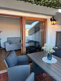 Luminosa mansarda arredata, di recente ristrutturazione, con terrazza, situata nel cuore del quartiere Pitz'e Serra, in una zona ricca di servizi raggiungibili a piedi (supermercati, palestre, tabaccherie e negozi). L'unità, interamente climatizzata, è composta da ingresso, confortevole soggiorno con zona pranzo, divano e televisore, bagno, camera matrimoniale con armadio su misura, cucinino separato completo di elettrodomestici (lavastoviglie, frigorifero/freezer, forno, piano cottura a induzione) e ampio ripostiglio con lavatrice. Il tutto si affaccia sulla terrazza al livello di circa 25 mq., attrezzata con barbecue, tavolo da pranzo, poltrone e divano. Ideale per single o coppie. Gli arredi e gli elettrodomestici sono tutti nuovi. Disponibilità dal 1 febbraio al 31 luglio. Contratto rinnovabile. Solo referenziati e con reddito documentabile.