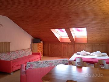Ampio open space di 56 mq con letto matrimoniale, divano letto aggiuntivo, angolo cottura completo di fornetto e piastra elettrica, bollitore, pentole e stoviglie. Dotato di doccia il bagno. L' alloggio è molto luminoso e dai 4 velux è possibile godere di una vista totale sulle Alpi Marittime.