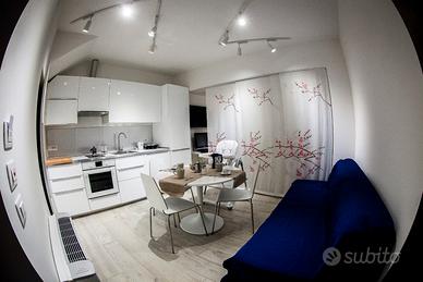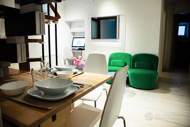 L'appartamento posto al piano primo (mq.99), invece, si sviluppa a sua volta su due livelli: al piano primo si trova un soggiorno con angolo cottura, un'ampia camera letto ed un bagno; al piano superiore troviamo un grazioso disimpegno, una camera matrimoniale ed un bagno.