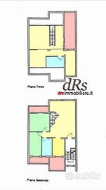 Situata al secondo piano senza ascensore, l'immobile dispone di un salone, cucina abitabile, due camere da letto, un bagno e due balconi al piano secondo. Ed un living, cucina, camera e terrazzo al piano terzo.