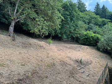 Completano la proprietà un terreno e, al piano terra, cantina, garage, posto auto e rimessa per legna di circa 140 mq.