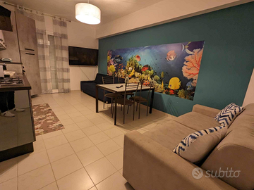 Appartamento annuale in residence con posto auto esclusivo, cucina living con divano letto, camera da letto matrimoniale, bagno, lavanderia, aria condizionata, terrazzino abitabile con vista mare, a 50 metri dal mare e dalla pista ciclabile. Disponibile dal 1 ottobre.