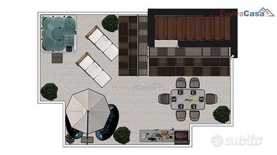 Al piano superiore si apre una terrazza panoramica di circa 60 mq, in parte coperta, con predisposizione per cucina esterna, e rinforzo strutturale per eventuale piscina. Uno spazio che pochi immobili possono offrire un vero salotto allaperto, dove creare una zona living, un solarium o unarea benessere privata.