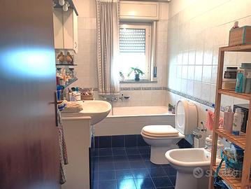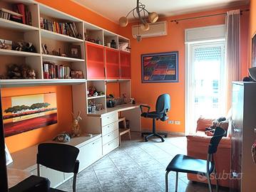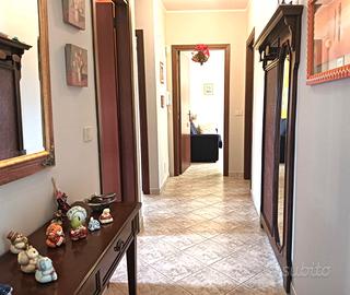 L'appartamento, posto al primo piano di uno stabile di costruzione 2002 di poche unità abitative, si estende su una superficie di 110 mq totali con un ampio ingresso living, corridoio, due camere (di cui una matrimoniale), un bagno, una lavanderia con doppio servizio e una cucina abitabile con balcone annesso.