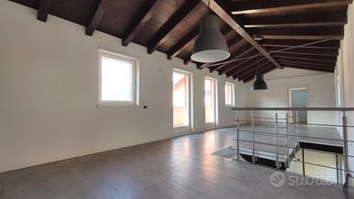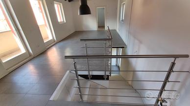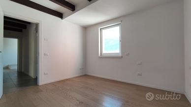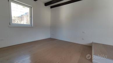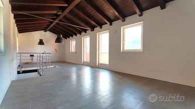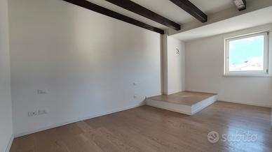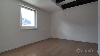 Si sale l'elegante scala a vista verso il piano attico, che ha una dimensione lorda di 70 mq: una grande zona giorno ad open space caratterizza questo piano, la posizione della scala crea una divisione tra una parte cucina-pranzo (anche con isola o penisola) ed un parte di ampio soggiorno, con ben sei tra finestre e porte finestre, ed accesso al lungo balcone ad ovest di 11 mq, con splendida vista aperta sulle montagne circostanti. A completare questo piano la terza stanza / studio e un bagno con doccia, finestrato con velux.