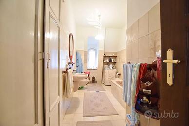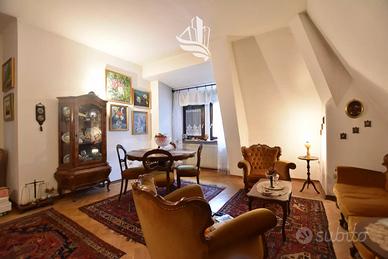 L'ampio trilocale in posizione centrale si estende su quasi 110 m² netti ed è composto da ingresso, soggiorno, cucina, 2 camere matrimoniali, bagno finestrato, ripostiglio e 2 balconi. Cantina, 2 soffitte e un posto auto esterno completano il tutto. L'appartamento si trova al 3° piano senza ascensore di un edificio costruito nel 1901 e dotato di giardino condominiale. Poiché l'immobile non è convenzionato, può essere utilizzato anche come appartamento per le vacanze.