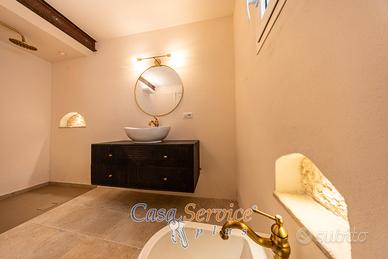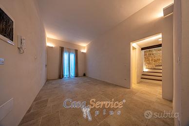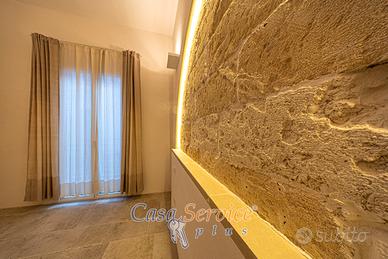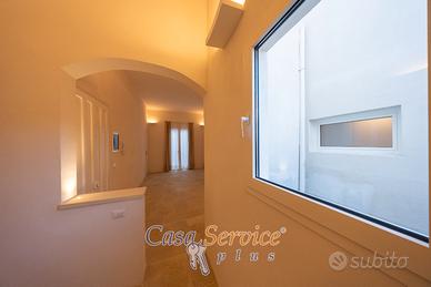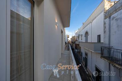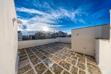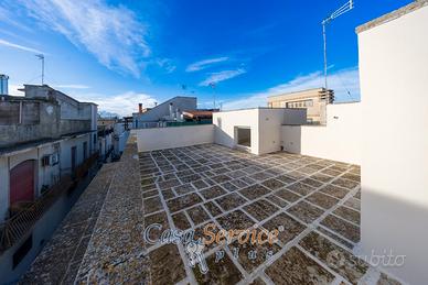 Elemento di grande pregio è il balcone perimetrale che abbraccia l'intera abitazione, garantendo luce naturale durante tutto il giorno. A completare la proprietà, una terrazza panoramica, ideale per cene all'aperto e momenti di relax sotto il cielo salentino.