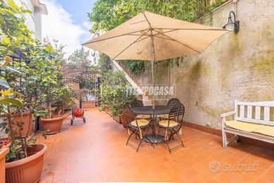 Ma il vero punto di forza della casa è il grande terrazzo di 90 mq disposto su due livelli: uno spazio unico, raro da trovare, perfetto per vivere all'aperto, organizzare cene con amici o semplicemente rilassarsi godendo della tranquillità della zona.
