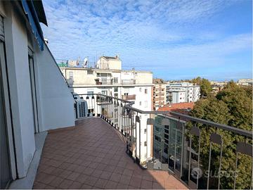 Mestre via Aleardi, angolo via Tasso - Vendesi grazioso attico al settimo piano con ascensore, 75mq, vista aperta sul parco e sulle montagne, semi arredato, composto da ingresso, cucina abitabile, salotto, due camere di cui una matrimoniale, bagno restaurato qualche anno fa, due ampi terrazzi. L'immobile è dotato di serramenti in PVC con vetrocamera, aria condizionata, porta blindata, riscaldamento centralizzato. Prezzo richiesto 145.000.