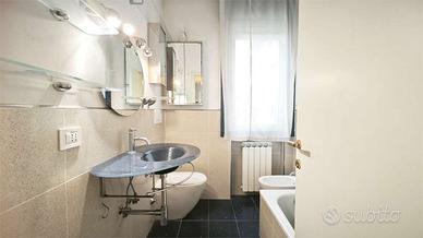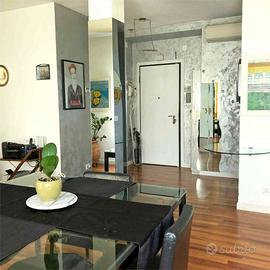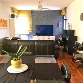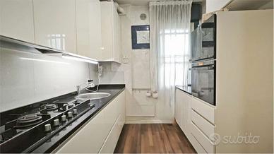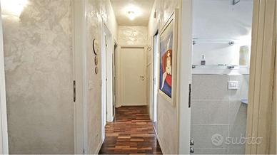 con vista sul bellissimo giardino condominiale recintato. L'immobile è composto da una luminosa zona giorno di 37 mq, una cucina separata, tre grandi camere da letto e due bagni moderni. Un valore aggiunto unico è lo scoperto comune antistante l'ingresso, un vero e proprio spazio esterno intimo e riservato all'interno del giardino condominiale recintato.
