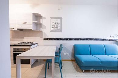 Mestre, zona Auchan, dietro a Bergamin, affittasi bel mini appartamento in costruzione del 2008, al quinto piano con ascensore, completamente arredato, luminoso, composto da soggiorno con angolo cottura, camera matrimoniale, bagno non finestrato, balcone e posto auto riservato in parcheggio condominiale al piano terra. L'immobile si presenta in ottime condizioni ed è dotato di riscaldamento autonomo, pavimenti in parquet nella camera, aria condizionata e serramenti in legno con vetrocamera. Spese condominiali mensili 70 inclusive di acqua fredda. Canone mensile richiesto 600.