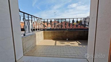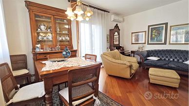 Mestre Via Monte Nero (zona stazione) elegante appartamento situato al secondo ed ultimo piano (con ascensore) di un signorile condominio del 1982 di sole 6 unità, composto da 3 camere, due bagni, cucina separata dal soggiorno, due bei terrazzini quadrati, garage di poprietà e posto auto numerato. L'interno, con i suoi 87 mq calpestabili, è molto ben distribuito. L'ingresso ha affaccio diretto su un soggiorno molto luminoso e la cucina abitabile è separata. Sia soggiorno che cucina hanno un piacevole terrazzino. La zona notte, separata dalla zona giorno è composta da una camera matrimoniale di 17 mq. una doppia di 13 mq ed una stanza adibita a cameretta di 8.87 mq. L'appartamento è dotato di doppio servizio: un bagno principale finestrato con vasca e un secondo bagno (cieco) con box doccia. Riscaldamento autonomo, raffrescamento con due split zona giorno e zona notte, tapparelle elettriche, garage di proprietà e posto auto nello scoperto condominiale di pertinenza esclusiva. Riscaldamento autonomo, raffrescamento con due split (zona giorno e disimpegno notte), tapparelle elettriche, ascensore. Classe Energetica: G gl,nren 350,00 kwh/mq anno. Richiesta Euro 225.000,00. Rif. Agenzia AC0400. Per informazioni e per fissare una visita Tiziana / Michela / Ufficio