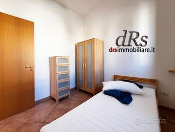 La soluzione, ubicata al piano secondo con ascensori, si compone di soggiorno con angolo cottura e terrazzo, tre camere e bagno. Completa la soluzione un box auto di proprietà ed un posto auto scoperto ad uso esclusivo.