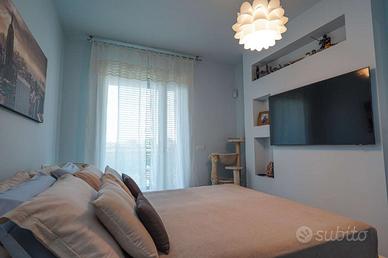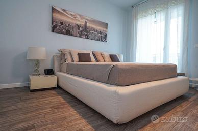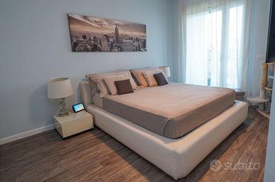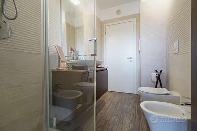 Tramite il disimpegno si accede alla zona notte dove troviamo una camera matrimoniale, una seconda camera e due bagni (uno con doccia e uno con vasca);