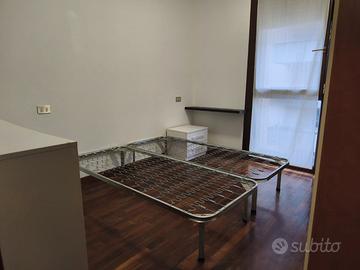 La zona notte comprende una camera matrimoniale arredata (manca solo il materasso), un comodo disimpegno e un bagno con doccia, dotato di ventola di estrazione.