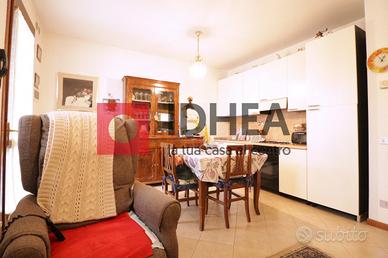 L'immobile degli anni 90' è una soluzione abitativa compatta e funzionale, che offre un soggiorno luminoso con angolo cottura e accesso diretto al giardino, una camera matrimoniale, disimpegno e bagno finestrato con box doccia.