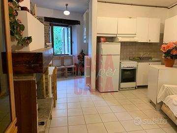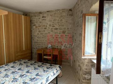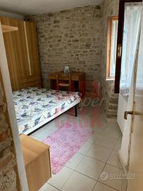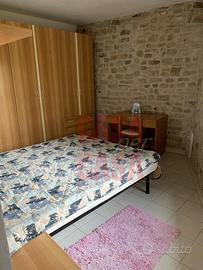 L'ingresso ai locali avviene proprio dalla base della torre, attraversandone l'arco: dal piano strada si accede all'ingresso in comune solo con altro appartamento. Porta blindata ed ingresso nel soggiorno con bel camino e attrezzato con angolo cottura. Da qui si accede alla camera matrimoniale ed all'attiguo bagno con una spaziosa cabina doccia.