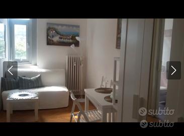 A pineta di Barcola , fronte Mare, servitissimo da mezzi pubblici e pista ciclabile, dieci minuti dal centro di Trieste, affittasi miniappartamento SENZA LAVATRICE, con angolo cottura e bagno completo finestrato, con lastrico solare parcheggio e giardino condominiale, posto bici coperto.