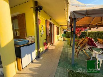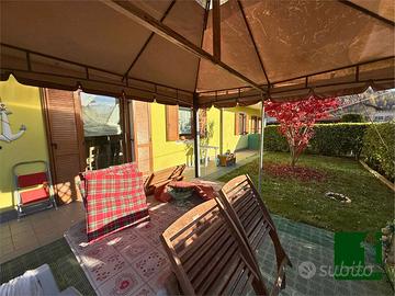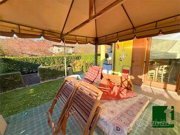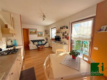 L'immobile è così composto: ingresso, bagno con doccia, stanza matrimoniale, zona giorno con cucina a vista e accesso al giardino privato di circa 135 mq in parte pavimentato. A completare l'immobile grande garage e posto auto condominiale assegnato. L'immobile viene venduto LOCATO con contratto 6+2 a canone concordato.