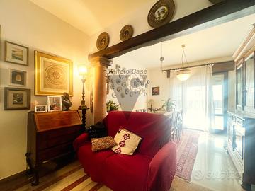 Posizione centrale disponiamo in condominio ristrutturato con il 110, al piano primo luminoso bicamere con cucina abitabile, soggiorno, ripostiglio, doppi servizi e due garage piccoli al piano terra