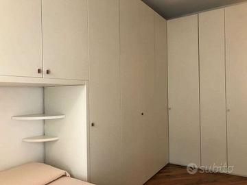 L'appartamento è così composto: ingresso, soggiorno, cucina abitabile, camera da letto, doppi servizi, ripostiglio in quota e due ampi balconi.