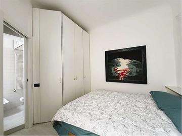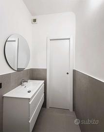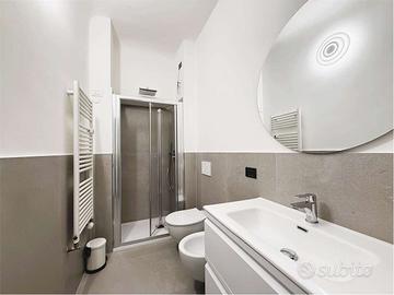 L'appartamento, sufficientemente luminoso, prende aria e luce da una doppia esposizione interna, presentandosi così, particolarmente silenzioso e tranquillo, è così composto: soggiorno doppio con cucina a vista, camera da letto matrimoniale, due bagni, una piccola zona lavanderia, oltre ad una cantina.