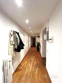 L'appartamento è così composto: ingresso, soggiorno, cucina separata lunga e stretta, due camere da letto matrimoniali e due bagni.