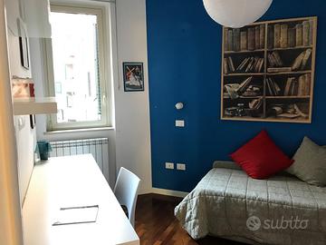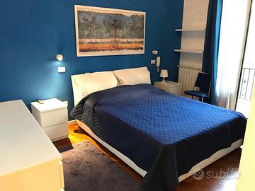 Moderno appartamento ristrutturato e rifinito in edificio d'epoca con corte interna e dotato di ascensore. 90 mq interamente parquettato. Si compone di un living con cucina, lavanderia, camera da letto matrimoniale con bagno in camera, camera da letto singola e bagno esterno alla camera. I bagni hanno entrambi comode docce. Nelle due camere da letto e all'ingresso sono presenti armadi a muro. L'appartamento è dotato di sistema di riscaldamento autonomo con termosifoni, di climatizzazione a pompe di calore e di filodiffusione. Porta blindata, l'immobile si affaccia su via Damiani Almeyda e sulla corte interna. L'appartamento si loca interamente arredato e corredato, con impianto home theatre, 2 televisori e completo di elettrodomestici. Disponibile dal 15 giugno 2026.