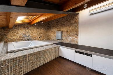 Jesi - Eleganza, design, modernità e comfort in un contesto abitativo che racchiude tutto il fascino di un'abitazione del centro storico: ecco la meravigliosa combinazione a cui dà vita questa incantevole soluzione cielo terra di 154 mq che proponiamo in vendita in esclusiva. Collocato in una delle vie più caratteristiche e suggestive del centro storico di Jesi, l'immobile è il risultato di una eccellente ristrutturazione effettuata nel 2007 e si presenta come una soluzione abitativa di assoluto prestigio, caratterizzata da magnifiche rifiniture interne, splendidi arredi dallo stile moderno (inclusi nel prezzo di vendita) e numerosi plus. La proprietà comprende più piani collegati da una scala interna e al tempo stesso dispone di due ingressi: uno per il piano terra, dove sono presenti una lavanderia, una cantina e uno studio dotato di ingresso indipendente e bagno, e uno per accedere alla parte propriamente abitativa. Quest'ultima si sviluppa su più livelli: al primo piano troviamo la zona giorno costituita da un elegante e luminoso living con camino, un bellissimo angolo cucina e un bagno, mentre il secondo piano - a cui si accede attraverso una stupenda scala in vetro e acciaio - ospita il reparto notte con camera matrimoniale dotata di moderna doccia a vista, cabina armadio e bagno. Camminando all'interno dell'abitazione a colpire sono anche il valore e la qualità delle rifiniture e dei dettagli interni: dai pavimenti in parquet agli splendidi lavabi in vetro, dalle bellissime travi a vista in legno che richiamano la tipicità delle abitazioni d'epoca fino a quegli elementi che garantiscono efficienza e comfort abitativo come gli infissi con doppi vetri o l'impianto d'aria condizionata. Ma non è tutto. Al terzo piano della proprietà, infatti, troviamo un'ulteriore sorpresa: una splendida soffitta con ampio velux impreziosita dalla presenza di una magnifica vasca idromassaggio. Un meraviglioso spazio aggiuntivo in cui concedersi veri momenti di relax. Prese
