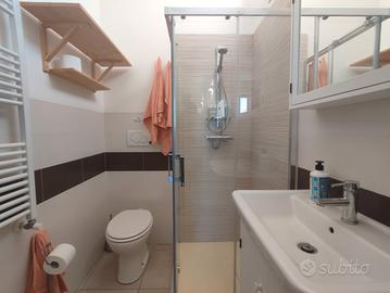 Una camera luminosa e generosa dotata di letto matrimoniale ed armadiatura nuova, e per finire un bagno completo.