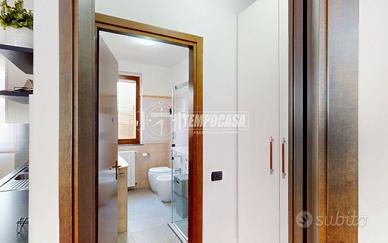 La Tempocasa di Paullo propone in vendita un ampio e luminoso trilocale di 120 mq disposto su due livelli, collegati da una raffinata scala interna in granito, all'interno di una palazzina moderna edificata nei primi anni 2000 e in ottime condizioni generali. Il primo livello si apre su un elegante open space con cucina abitabile a vista in stile americano, perfettamente integrata con la zona living, e accesso diretto ad un balcone privato. Un comodo disimpegno conduce ad un primo bagno finestrato con box doccia, completando la zona giorno. Al piano superiore si sviluppa la zona notte, caratterizzata da un lungo corridoio con libreria su misura che accompagna a due camere: una singola e una matrimoniale dotata di bagno en suite e cabina armadio in vetro temperato opaco, elemento di grande stile e modernità. A completare la proprietà un box singolo di pertinenza. Un'abitazione curata nei minimi dettagli, perfetta per chi desidera vivere in un ambiente contemporaneo e di qualità in una zona ottima.