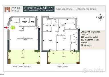 Rif: 219-2 (193496588) - MOGLIANO VENETO CENTRO - Proponiamo esclusivi appartamenti di nuova costruzione al centro della Città di Mogliano, il tutto immerso nel verde di un'oasi di eleganza, pace e raffinatezza, affacciati ad uno splendido parco secolare che circonda la proprietà, un progetto che sposa i massimi standard di efficientamento energetico e dalle finiture uniche e di pregio. La costruzione è composta da quattro livelli, di cui 3 rialzati ed uno seminterrato, offre nove residenze di grande prestigio. L'immobile proposto si sviluppa su due livelli, al piano rialzato troviamo una ampia zona living di 43 mq con angolo cottura ed uscita sul terrazzo/loggia di 26 mq affacciato al parco condominiale, disimpegno/lavanderia ed un bagno con box doccia, salendo le scale al primo piano troviamo un ampio disimpegno ottimo per armadi a muro, due camere da letto matrimoniali entrambe servite da bagno in camera ed una terrazza/loggia di 26 mq. A scelta del cliente sono disponibili i posti auto condominiali ed 11 garage, singoli, doppi e tripli, la vendita avverrà a parte con un listino prezzi dedicato. Tutte le residenze saranno dotate dei massimi sistemi tecnologici in termine di efficienza e risparmio energetico, con classificazione in A4, saranno dotate di impianto fotovoltaico, riscaldamento a pavimento, aria condizionata canalizzata, sistema VMC integrale, infissi in legno laccato, avvolgibili motorizzati in alluminio e porte interne a tutta altezza. RIF219-2 - PREZZI A PARTIRE DA € 420.000 PER INFORMAZIONI CHIAMARE STUDIO IMMOBILMARCA. - Classe: A4 - IPE: 175.00 kWh/mq anno